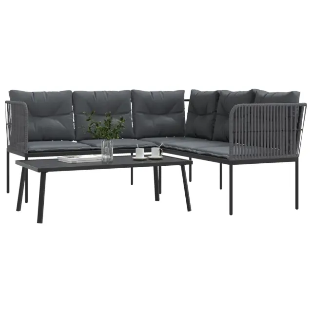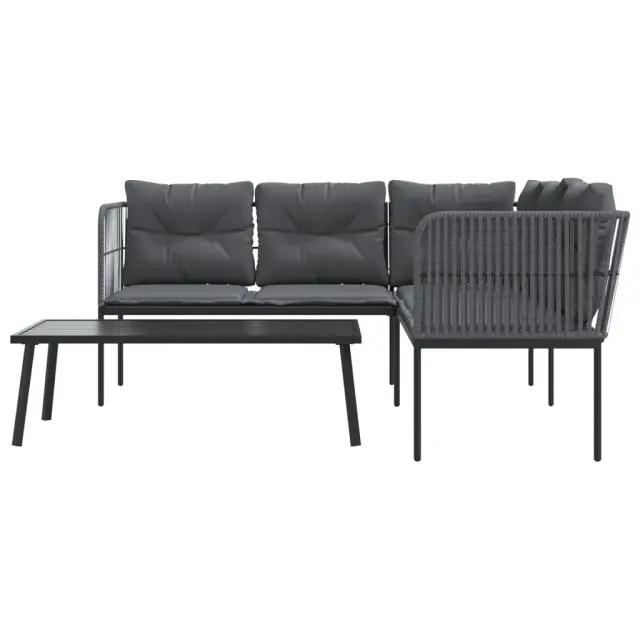 Vrtni kavč - Zunanji kavč z blazinami oblika črke L črno jeklo in tekstilen