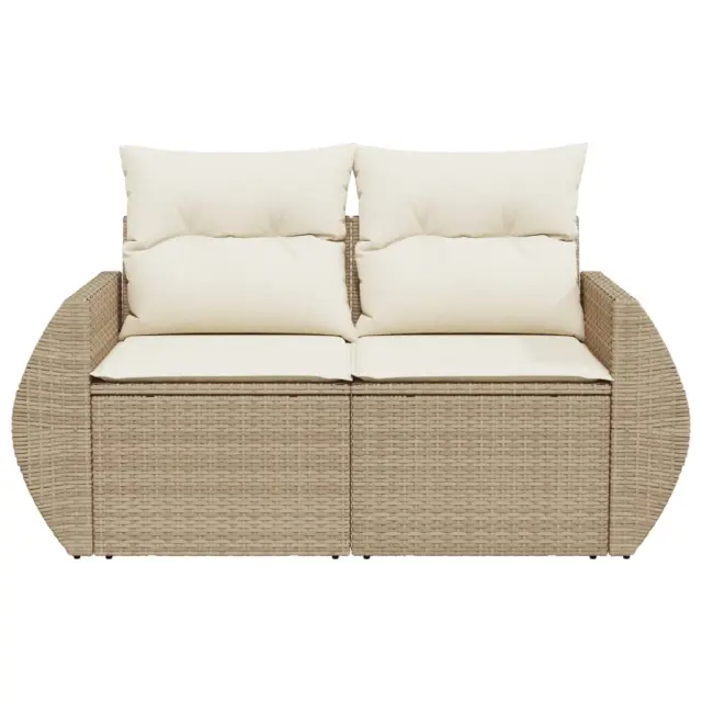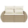Vrtni kavč - Zunanji kavč z blazinami 2-sedežni bež poli ratan