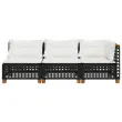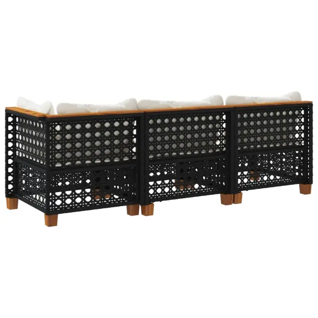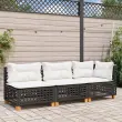 Vrtni kavč - Zunanji kavč z blazinami 3-sedežni črn poli ratan