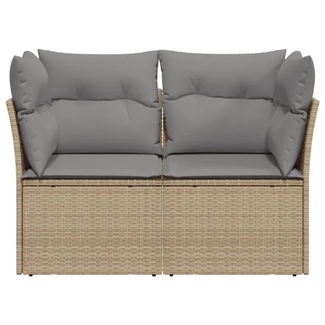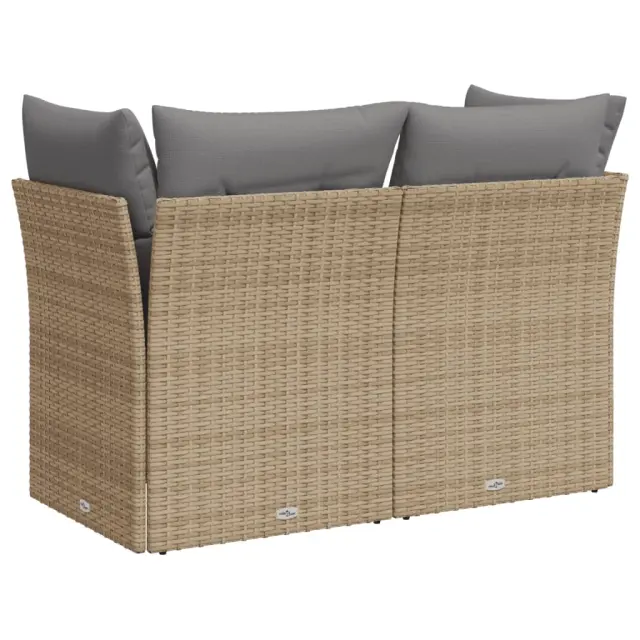 Vrtni kavč - Zunanji kavč z blazinami 2-sedežni bež poli ratan