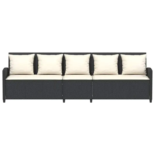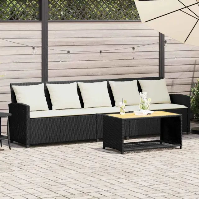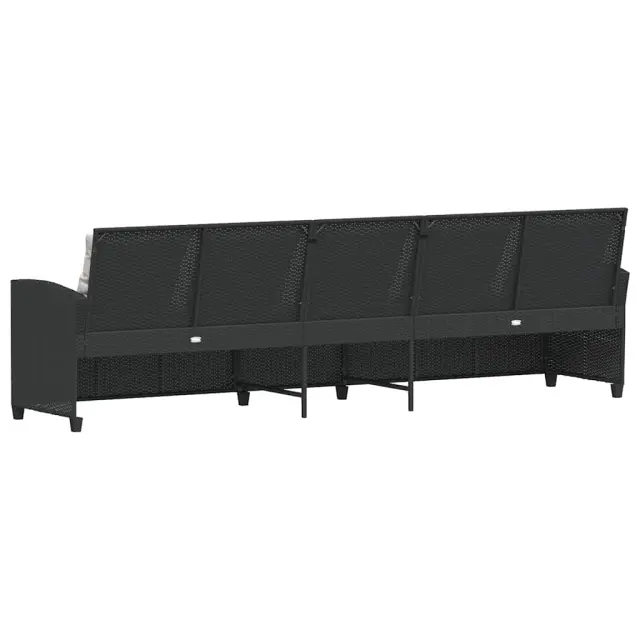 Vrtni kavč - Zunanji kavč z blazinami 5-sedežni črn poli ratan