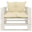 Vrtni kavč - Zunanji kavč iz palet s krem blazinami lesen