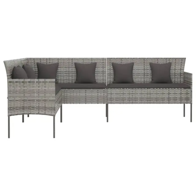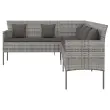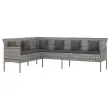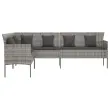 Vrtni kavč - Zunanji kavč v obliki črke L z blazinami siv poli ratan