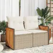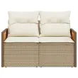 Vrtni kavč - Zunanji kavč z blazinami 2-sedežni bež poli ratan