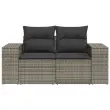 Vrtni kavč - Zunanji kavč z blazinami 2-sedežni siv poli ratan