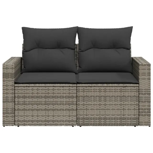 Vrtni kavč - Zunanji kavč z blazinami 2-sedežni siv poli ratan