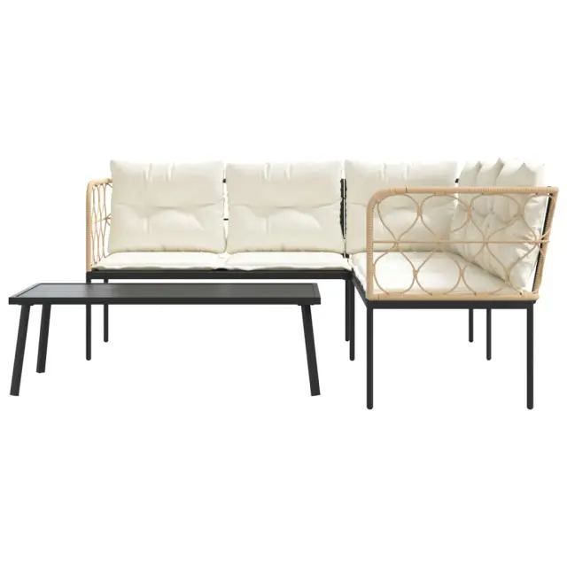 Vrtni kavč - Zunanji kavč z blazinami oblika črke L črno jeklo in tekstilen