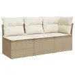 Vrtni kavč - Zunanji kavč z blazinami 3-sedežni bež poli ratan