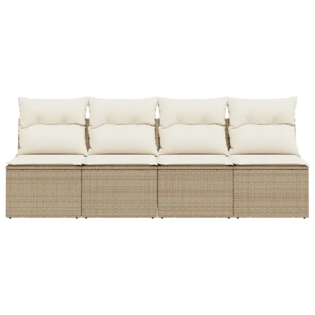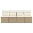 Vrtni kavč - Zunanji kavč z blazinami 4-sedežni bež poli ratan