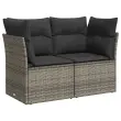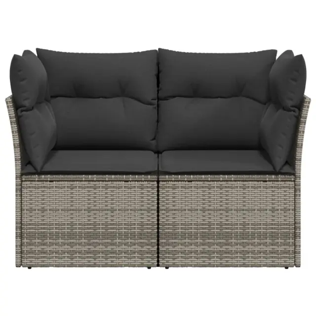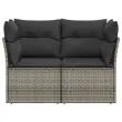 Vrtni kavč - Zunanji kavč z blazinami 2-sedežni siv poli ratan