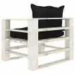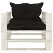 Vrtni kavč - Zunanji kavč iz palet s črnimi blazinami lesen