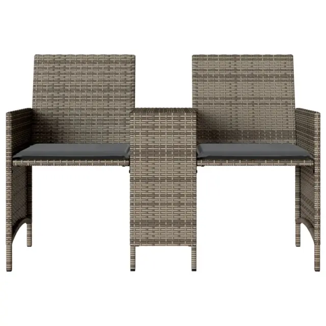 Vrtni kavč - Zunanji kavč dvosed z mizico in stolčki siv poli ratan