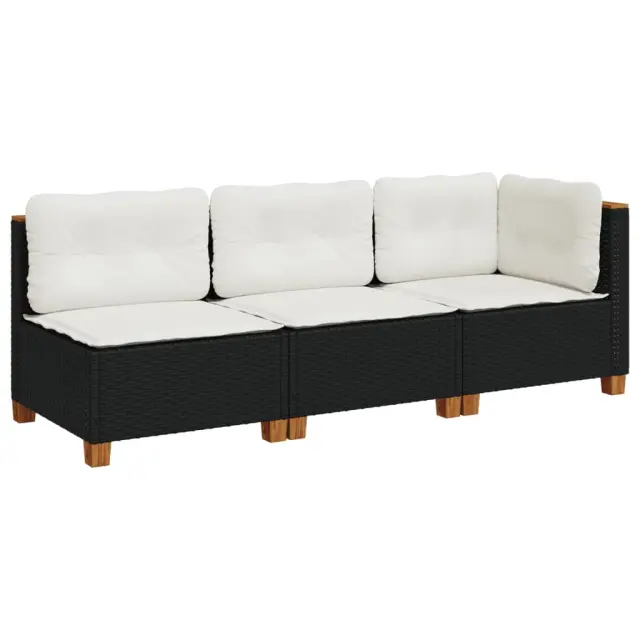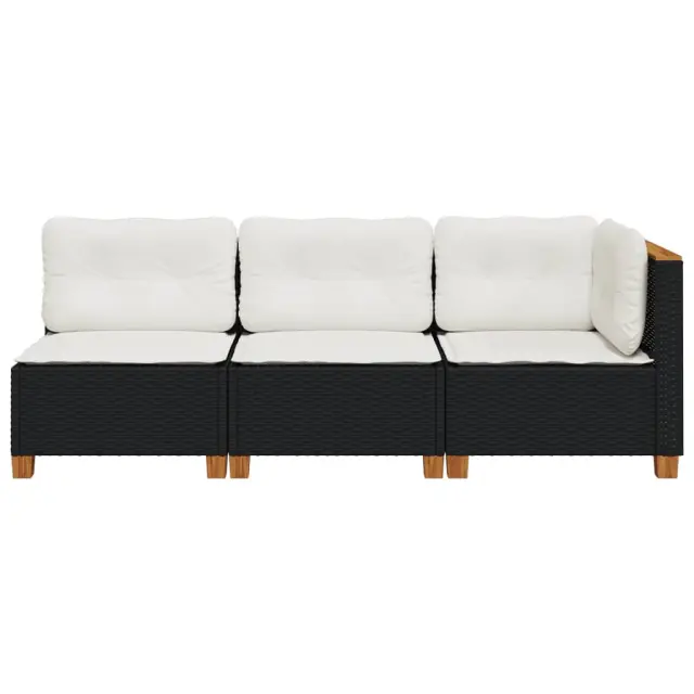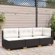 Vrtni kavč - Zunanji kavč z blazinami 3-sedežni črn poli ratan