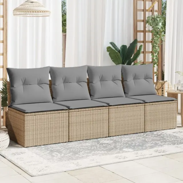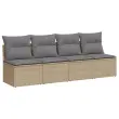 Vrtni kavč - Zunanji kavč z blazinami 4-sedežni bež poli ratan