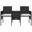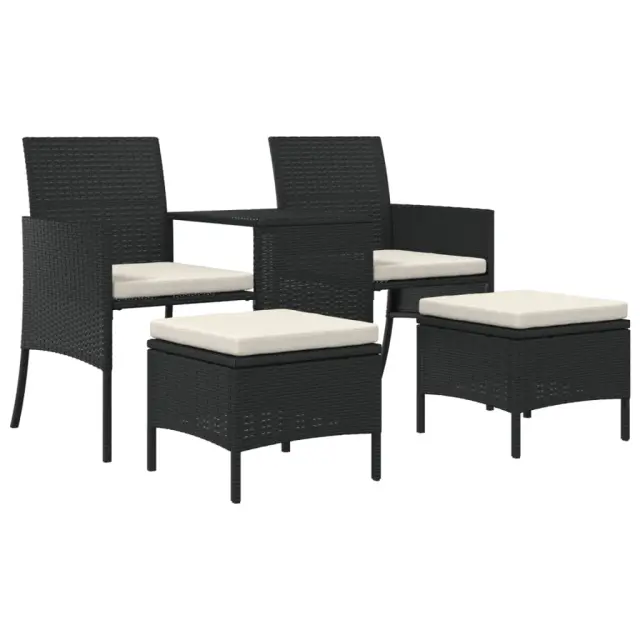 Vrtni kavč - Zunanji kavč dvosed z mizico in stolčki črn poli ratan
