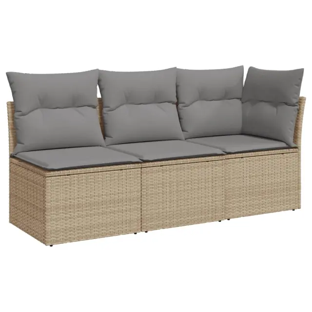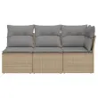Vrtni kavč - Zunanji kavč z blazinami 3-sedežni bež poli ratan