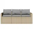 Vrtni kavč - Zunanji kavč z blazinami 3-sedežni bež poli ratan