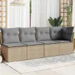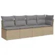 Vrtni kavč - Zunanji kavč z blazinami 4-sedežni bež poli ratan