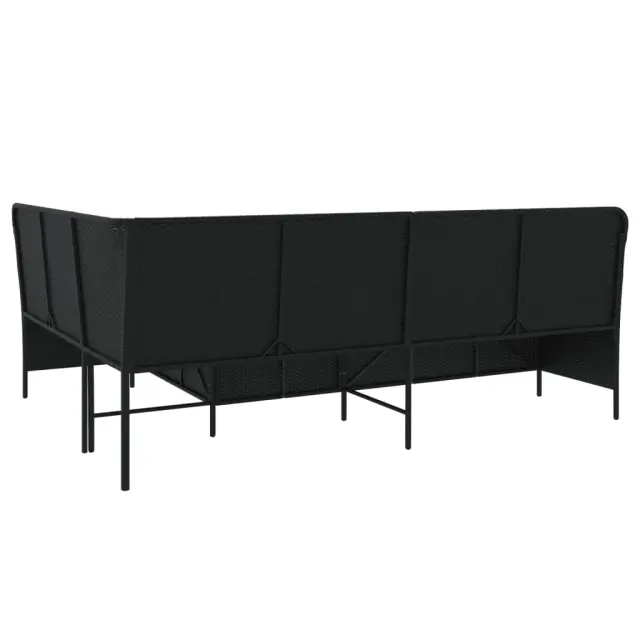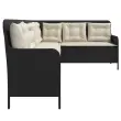 Vrtni kavč - Zunanji kavč z blazinami v obliki črke L črn poli ratan