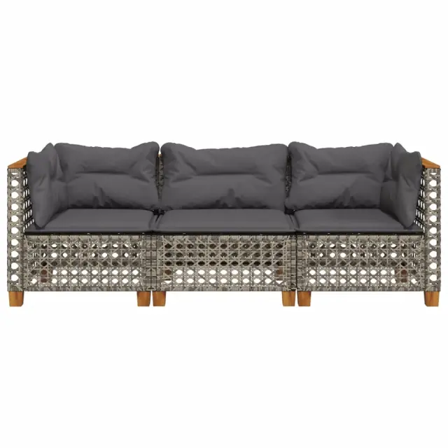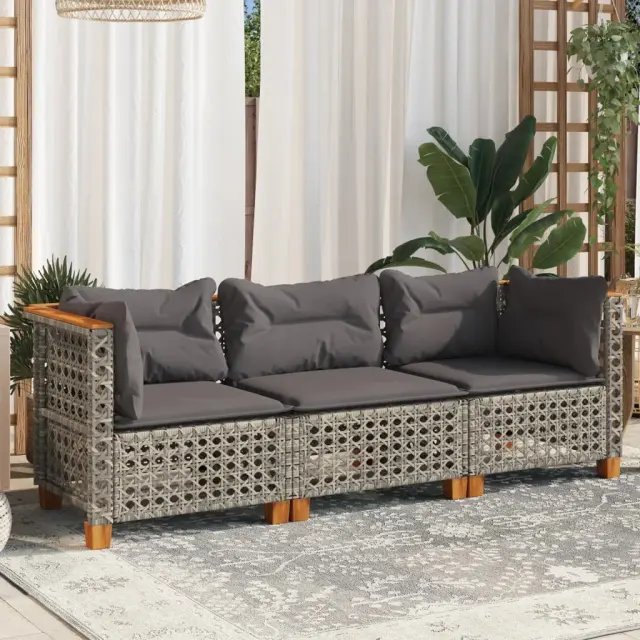 Vrtni kavč - Zunanji kavč z blazinami trosed siv poli ratan