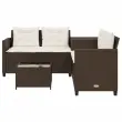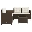 Vrtni kavč - Zunanji kavč z mizo in blazinami v obliki črke L rjav poli ratan
