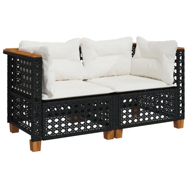 Vrtni kotni kavč - Zunanji kavči z blazinami 2 kosa črn poli ratan