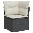 Vrtni kotni kavč - Zunanji kavč z blazinami črn poli ratan