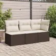 Vrtni kotni kavč - Zunanji kavč z blazinami rjav poli ratan