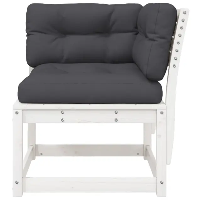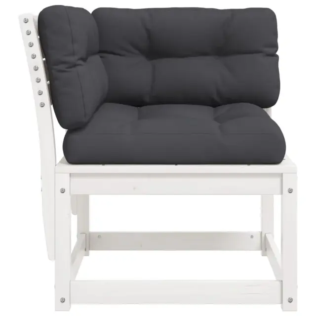 Vrtni kotni kavč - Zunanji kavč z blazinami bel 73x73x78 cm trdna borovina