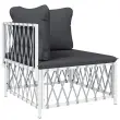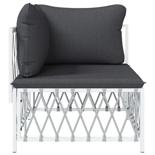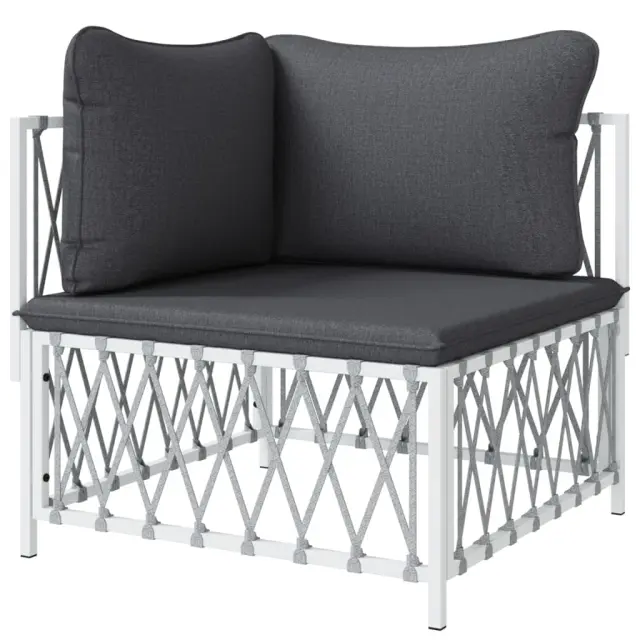 Vrtni kotni kavč - Zunanji kavč s blazinami bela tkanina