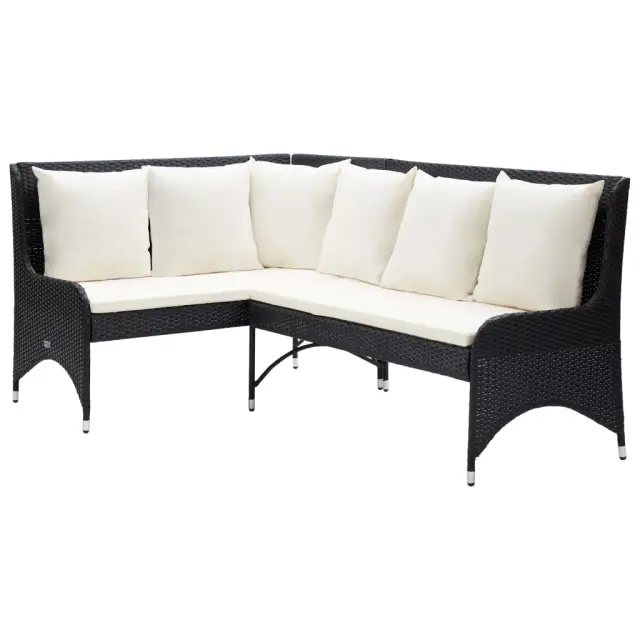 Vrtni kotni kavč - Zunanji kavči 2 kosa poli ratan črne barve