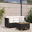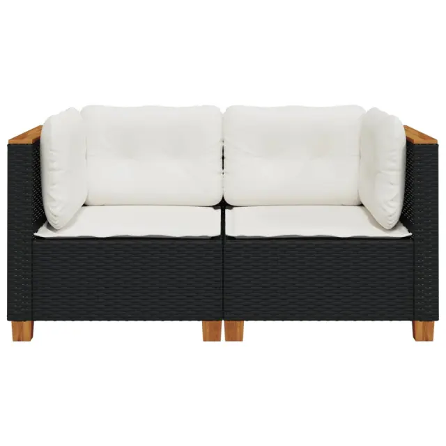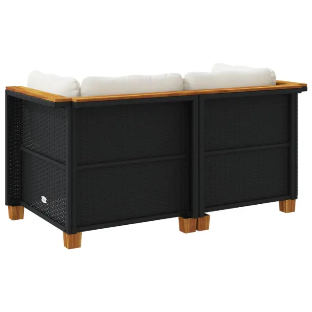 Vrtni kotni kavč - Zunanji kavči z blazinami 2 kosa črn poli ratan
