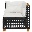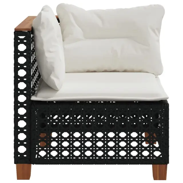 Vrtni kotni kavč - Zunanji kavč z blazinami črn poli ratan