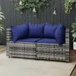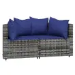 Vrtni kotni kavč - Zunanji kavči z blazinami 2 kosa siv poli ratan
