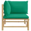 Vrtni kotni kavč - Zunanji kavč z zelenimi blazinami bambus