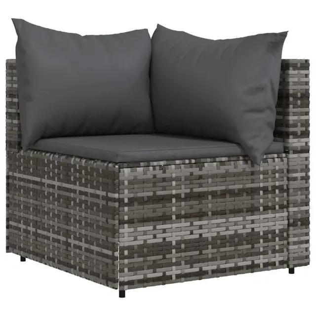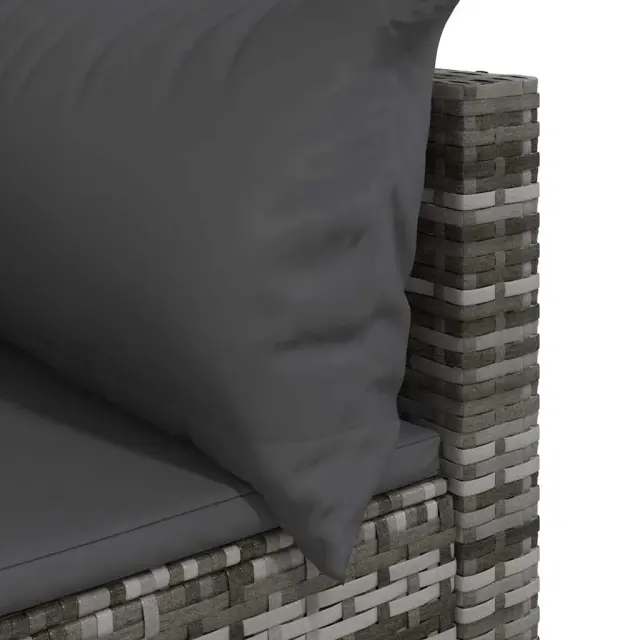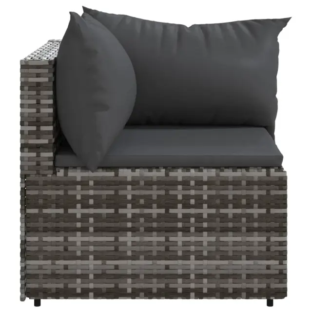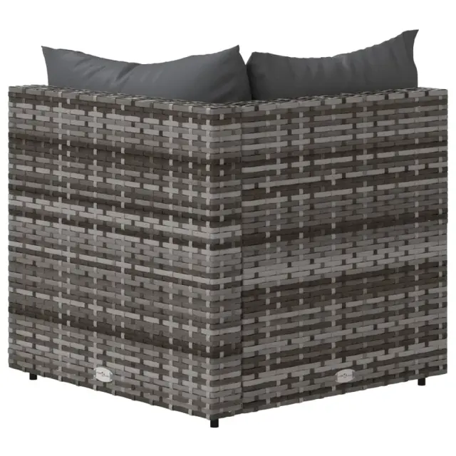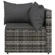 Vrtni kotni kavč - Zunanji kavč z blazinami siv poli ratan