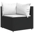 Vrtni kotni kavč - Zunanji kavč z blazinami črn poli ratan