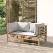 Vrtni kotni kavč - Zunanji kavč s svetlo sivimi blazinami 2 kosa bambus