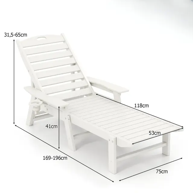 S tem visokokakovostnim vrtnim ležalnikom, izdelanim za dolgotrajno uporabo in udobje, si lahko izboljšate sprostitev na prostem. Ta ležalnik je izdelan iz visokokakovostnega HDPE in je odporen na bledenje, vodo in sijaj ter ima vijake iz nerjavnega jekla za trajno stabilnost. Enostavno nastavljivo štirismerno naslonjalo vam omogoča, da se sprostite v najbolj udobnem položaju. Prostoren sedež z režami velikosti 116 x 53 cm in širokimi nasloni za roke pa zagotavlja optimalno udobje.