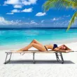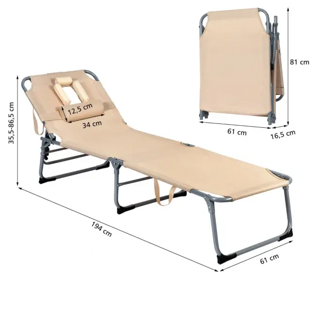 Vrtni ležalnik z bralnim okencem bež Zložljivi ležalnik za sončenje