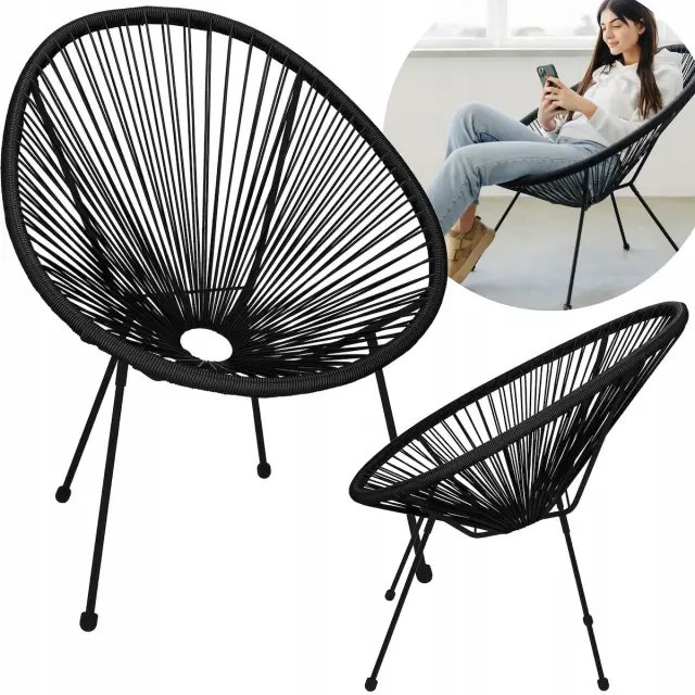 OPENWORK RATAN ACAPULCO GARDEN CHAIR Blagovna znamka: Springos® Barva: črna Material: PE ratan, kovina Maksimalna obremenitev: 120 kg Število elementov v kompletu: 5 (sedišče + 4 noge) Višina: 87 cm Širina: 70 cm Globina: 73 cm Izdelek šifra: GF0085 🌺USTVARITE PRIJETNO OAZO UDOBJA V VAŠ VRT🌺 Usedite se in se sprostite ob skodelici vaše najljubše kave in dobrem branju - naš odprt fotelj bo poskrbel za maksimalno udobje med počitkom na vrtu ali terasi. ✅MODERNOST IN ELEGANCA✅ Eleganten, unikaten stol iz ratana. Bež sedež, noge iz črne kovine, moderen dizajn. ☀️UNIVERZALNA UPORABA☀️ Dizajnerski odprti stol/fotelj je kombinacija udobja z moderno in elegantno obliko. Idealen kos pohištva za ljudi, ki cenijo funkcionalne in estetske rešitve. Naš stol z edinstveno, ovalno obliko se bo podal tako v klasične kot sodobnejše aranžmaje, pritegnil pozornost in prostoru dodal izvirnost. Dobro se bo obnesel v dnevni sobi, na terasi ali na vrtu. ⭐️PREDNOSTI NAŠEGA STOLA⭐️ 💎Je izdelek že leta znane in cenjene blagovne znamke Springos® 💎V najbolj modnem slogu 💎Ohranjen v univerzalnih in priljubljenih barvah 💎Zagotavlja toplotno ugodje in zračnost v vročih dneh 💎Ne vpija vlage 💎 Zahvaljujoč odprti strukturi se manj segreva na soncu kot drugi stoli 💎 Enostaven za čiščenje 💎 Je zračen, hitro se suši 💎 Lahek in trpežen ⭐️ TRPEŽEN IN TRDEN ⭐️ Za izdelavo stola so bili uporabljeni močni materiali najvišje kakovosti, zaradi česar je odličen predlog za vse, ki iščejo odporno in trajno pohištvo, ki se lahko uporablja več let. Stol odlikuje solidna izdelava. Fotelj je izdelan iz kovinskega ogrodja in napetih polietilenskih vrvi (PE ratan). Noge so zaključene s stopali, ki ščitijo površino pred praskami. Kovinski okvir je prekrit s črnim protikorozijskim premazom. ⭐️ ELEGANTNO IN UDOBNO ⭐️ Kombinacija kovinske konstrukcije s sedežem iz vrvic iz ratana daje našemu fotelju prepoznaven videz. Popoln za stil loft, modern in boho. Pravilno profiliran, globok sedež zagotavlja visoko udobje uporabe. 🌟PREVERJENA ZNAMKA🌟 Predstavljeni izdelek spada v kolekcijo znamke Springos®, ki ponuja certificirano blago najvišje kakovosti, ki bo všeč vsem ljudem, ki cenijo udobje in eleganco. Da bi zadovoljili zahteve svojih strank, podjetje nenehno razvija in izboljšuje lastno paleto izdelkov. Zahvaljujoč temu lahko ponosno razkazuje zgornji izdelek, pa tudi mnoge druge, ki bodo nedvomno polepšali življenja vseh njegovih uporabnikov. Parametri: Znamka: Springos® Barva: črna Material: PE ratan, kovina Največja obremenitev: 120 kg Število elementov v kompletu: 5 (sedišče + 4 noge) Mere: Skupna višina na najvišji točki: pribl najnižja točka obsega sedeža: 39 cm Skupna dolžina sedeža: 88 cm Skupna širina: 70 cm Skupna globina celotnega stola: 73 cm Premer notranje odprtine sedež: 9 cm Dolžina naslona od roba odprtine: 58 cm Dolžina sedeža od roba odprtine: 37,5 cm Debelina roba stola: cca 2,5 cm Razdalja med nogami: 41 / 54,5 / 57,5 cm Debelina nog: 1,2 / 3 cm Dolžina nog: 40,5 cm Debelina cevi sedežne konstrukcije: 4 mm Debelina cevi osnovne strukture sedež: 5 / 12 mm Dodatne informacije: Noge so privijačene v okvir sedeža