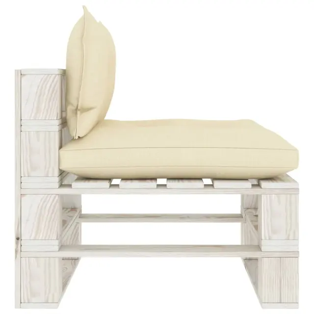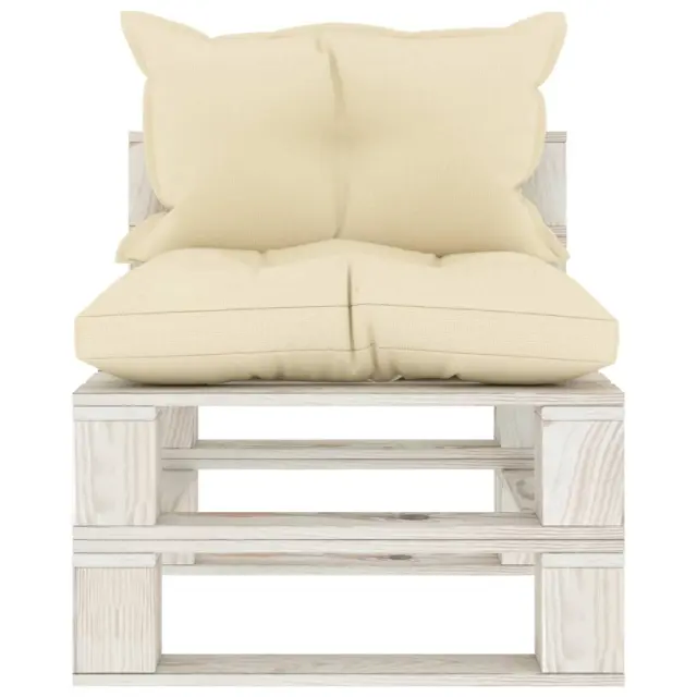 Vrtni sredinski kavč - Zunanji kavč iz palet s krem blazinami lesen