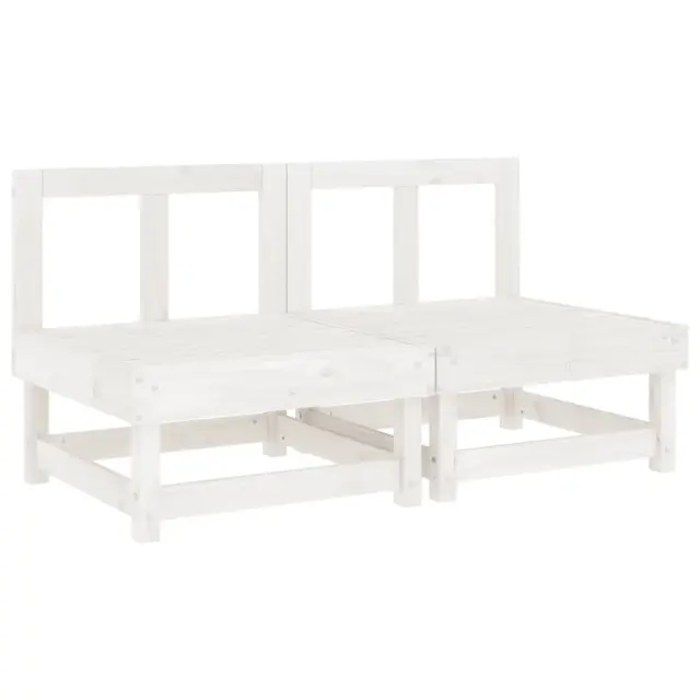 Vrtni sredinski kavč - Zunanji kavč 2 kosa bela trdna borovina