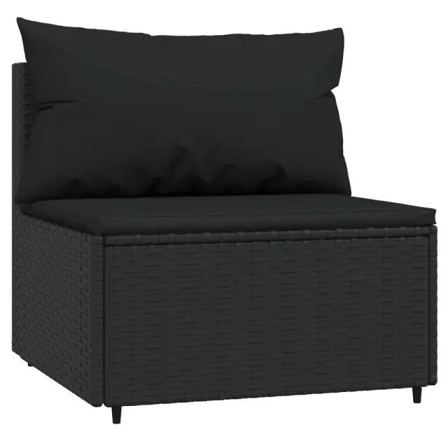 Vrtni sredinski kavč - Zunanji kavč z blazinami črn poli ratan
