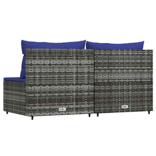 Vrtni sredinski kavč - Zunanji kavč z blazinami 2 kosa siv poli ratan