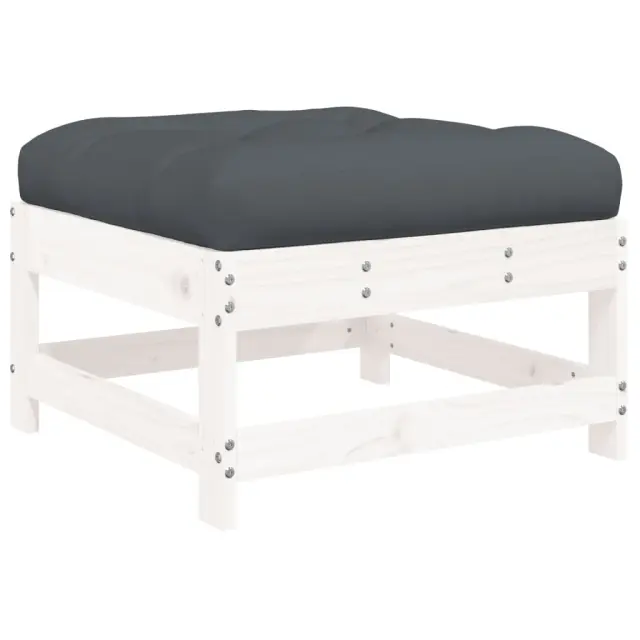 Vrtni stolček - Vrtni stoli za noge z blazino 2 kosa bela trdna borovina JS958