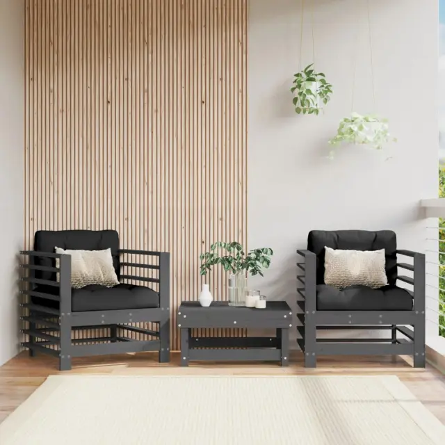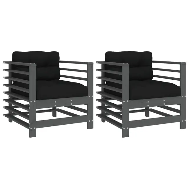Vrtni stoli - Stol za vrt z blazino 2 kosa siva trdna borovina JS2550