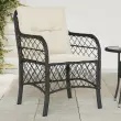 Sprostite se in uživajte na prostem na teh udobnih vrtnih stolih! Vzdržljiv material: PE ratan, znan tudi kot poli ratan, je močan sintetični material, ki zahteva malo vzdrževanja in je videti kot naravni ratan. Je lahek, enostaven za čiščenje in se zaradi svoje vzdržljivosti in odpornosti na vremenske vplive pogosto uporablja za zunanje pohištvo.Udobno sedenje: To zunanje pohištvo z debelo oblazinjenimi blazinami zagotavlja udobno sedenje.Prevleko je mogoče odstraniti in oprati: Te sedežne blazine imajo odstranljive prevleke za lažje pranje in vzdrževanje.Robusten in stabilen okvir: Prašno premazan jeklen okvir zagotavlja, da je vrtno pohištvo močno in stabilno za vsakodnevno uporabo na prostem. Dobro je vedeti:Če želite, da vaše zunanje pohištvo ostane lepo, vam priporočamo, da ga zaščitite z vodoodporno prevleko.Stol:Barva: ČrnaMaterial: PE ratan, jeklen okvir s prašnim premazomDimenzije: 58,5 x 67 x 86 cm (Š x G x V)Velikost sedeža: 48 x 51 cm (Š x G)Višina sedeža, merjena od tal: 42 cmVišina naslonjala za roke, merjena od tal: 63 cmMaksimalna nosilnost (na sedež): 110 kgUV-odpornoBlazina:Barva: Kremno belaMaterial prevleke: Tkanina (100 % poliester)Polnilo sedežne blazine: PenaPolnilo hrbtne blazine: bombažna vlaknaDimenzije sedežne blazine: 49 x 51 x 3 cm (Š x G x D)Dimenzije hrbtne blazine: 50 x 50 x 11 cm (D x Š x D)Potrebno sestavljanje: DaPaket vsebuje:2 x Vrtni stol2 x Blazina za hrbet2 x Sedežna blazina s snemljivo pralno prevleko Največ 110 kg na sedež. Zavedajte se nevarnosti odprtega ognja in drugih virov močne vročine v bližini izdelka.