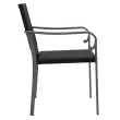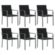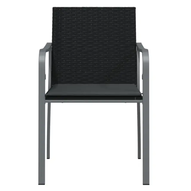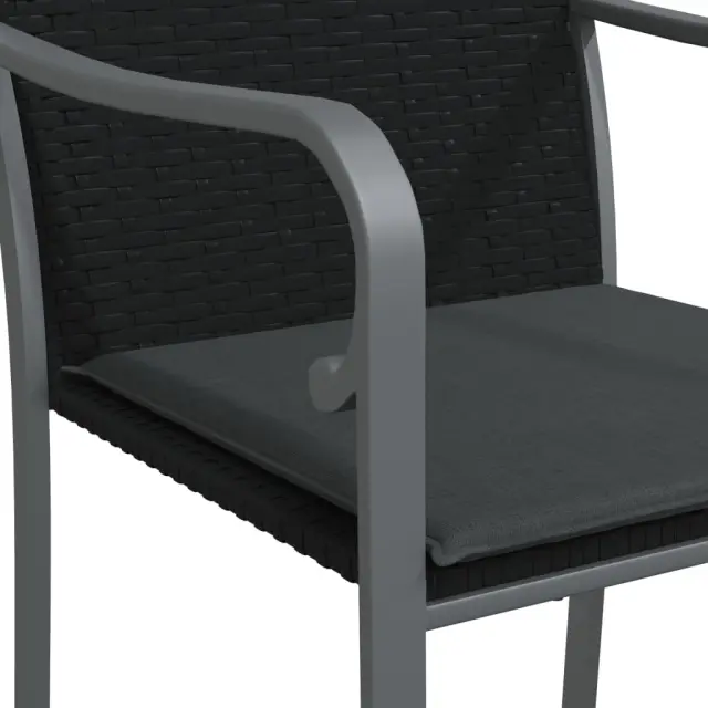 Ti elegantni vrtni stoli so odličen dodatek za vaš vrt in teraso, saj bodo naredili trajen vtis! Vzdržljiv material: PE ratan, znan tudi kot poli ratan, je odporen na vremenske vplive in enostaven za čiščenje. Na zunaj ostane lep dolgo časa. Ponuja odlično kakovost, priročnost in estetski videz.Trden okvir: Jeklen okvir naredi vrtno sedežno garnituro trdno in stabilno za vsakodnevno uporabo na prostem.Udobno sedenje: Naslonjala za hrbet in roke zagotavljajo dodatno udobje pri sedenju na zunanjem stolu. Poleg tega debelo podložena blazina zagotavlja udobje med sedenjem.Eleganten naslon za roke: Nasloni za roke v obliki črke G vrtnega stola prinašajo pridih elegantnega šarma. Opomba:Če želite, da vaše zunanje pohištvo ostane lepo, vam priporočamo, da ga zaščitite z vodoodporno prevleko.Vrtni stolBarva: ČrnaMaterial: PE ratan, jekloDimenzije: 56 x 59 x 84 cm (Š x G x V)Višina sedeža od tal (brez blazine): 45 cmGlobina sedeža: 45 cmVišina naslonjala za roke od tal: 65 cmVišina naslonjala za hrbet od sedeža: 43 cmMaksimalna nosilnost: 110 kgBlazina:Barva: Temno sivaMaterial: Blago (100 % poliester)Material polnila: PenaDimenzije: 50 x 48 x 3,5 cm (D x Š x D)Potrebno sestavljanje: DaPaket vsebuje:6 x Vrtni stol6 x Blazina Maksimalna teža na sedež: 110 kg. Bodite pozorni na tveganje odprtega ognja in druge vire močne toplote v bližini izdelka.