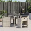 Sprostite se in uživajte na prostem na teh udobnih vrtnih stolih! Vzdržljiv material: PE ratan, znan tudi kot poli ratan, je močan sintetični material, ki zahteva malo vzdrževanja in je videti kot naravni ratan. Je lahek, enostaven za čiščenje in se zaradi svoje vzdržljivosti in odpornosti na vremenske vplive pogosto uporablja za zunanje pohištvo.Udobno sedenje: To zunanje pohištvo z debelo oblazinjenimi blazinami zagotavlja udobno sedenje.Naslonjalo z loputo: Ti stoli imajo naslonjalo, ki ga je mogoče zložiti za kompaktno shranjevanje.Odstranljiva in pralna prevleka: Te blazine imajo odstranljive prevleke za enostavno pranje in vzdrževanje. Prevleke za blazine za stole imajo na zadnji strani zavihek za enostavno pritrditev na stole.Robusten in stabilen okvir: Prašno premazan jeklen okvir zagotavlja, da je vrtno pohištvo močno in stabilno za vsakodnevno uporabo na prostem. Dobro je vedeti:Če želite, da vaše zunanje pohištvo ostane lepo, vam priporočamo, da ga zaščitite z vodoodporno prevleko.Vrtni stol:Barva: Svetlo sivaMaterial: PE ratan, jeklen okvir s prašnim premazomDimenzije: 50,5 x 54 x 79 cm (Š x G x V)Velikost sedišča: 45,5 x 38 cm (Š x G)Višina sedišča, merjena od tal: 43 cmVišina naslonjal za roke, merjena od tal: 63,5 cmMaksimalna nosilnost (na sedež): 110 kgUV-odpornoBlazina:Barva: AntracitnaMaterial prevleke: Tkanina (100 % poliester)Material polnila: PenaDimenzije blazine za stol: 76 x 46 x 2 cm (D x Š x T)Potrebno sestavljanje: Da Paket vsebuje:4 x Vrtni stol4 x Blazina za stol z visokim naslonom s snemljivo in pralno prevleko Največ 110 kg na sedež.